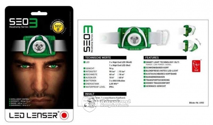 Led Lenser SEO3 fejlámpa (zöld)
